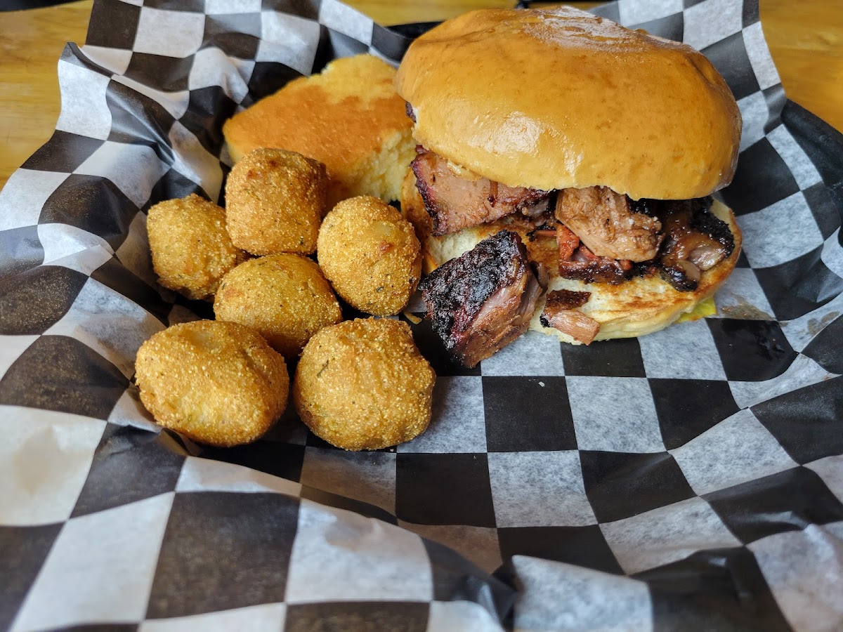 Wagon Train BBQ specializes in the rich flavors of American barbecue, offering a diverse array of dishes that cater to every palate. Indulge in their exquisite pulled pork sandwich, where tender, smoky meat melds perfectly with a tangy barbecue sauce, or the standout beef brisket burnt ends that have garnered rave reviews for their juicy texture and bold taste. Patrons have been delighted by the generous 2-meat platter, showcasing both the half rack of ribs and brisket, a dish that has been deemed “fantastic” by first-time visitors.